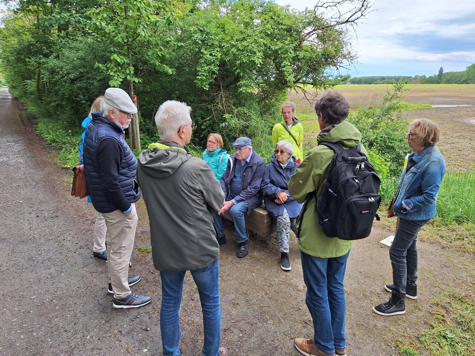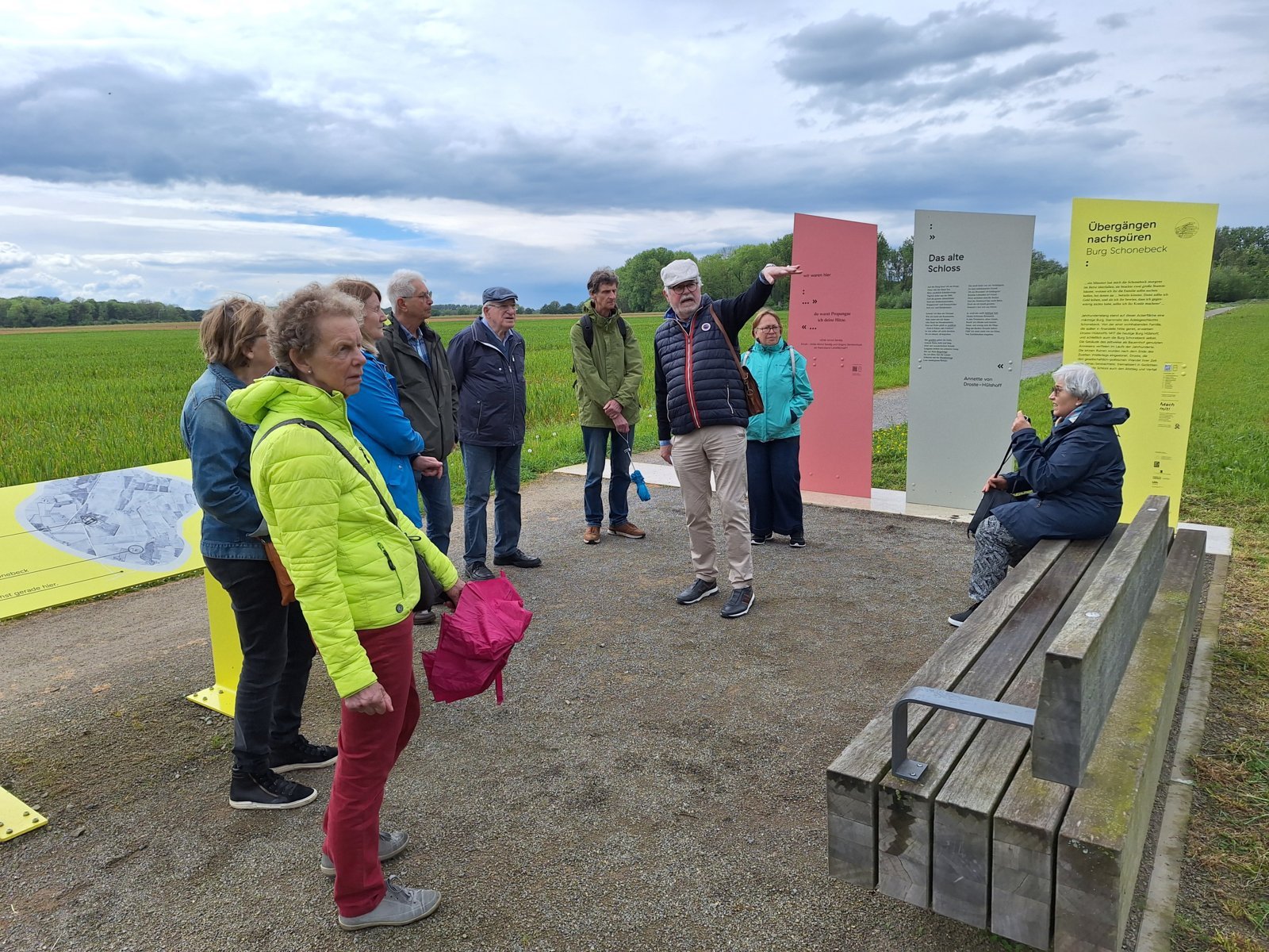 In Fortsetzung der Wanderung des Vorjahres erläuterte Dr. Dieter Potente diesmal die Stationen des Lyrikwegs auf der Strecke zwischen Schloss Hülshoff und der Aa bei Schonebeck.