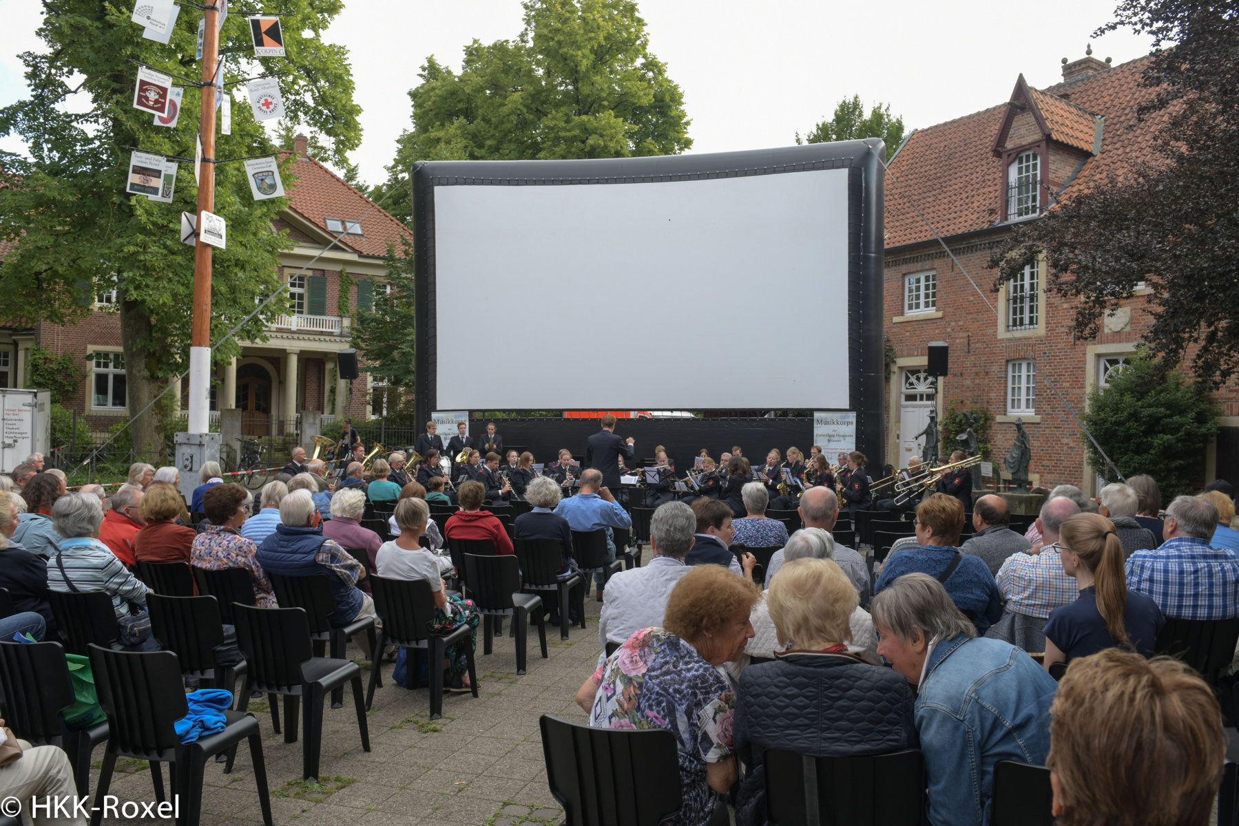 Auf dem Pantaleonplatz waren für gut 300 Gäste Stuhlreihen vor einer Großleinwand aufgestellt, ferner etliche Bierzeltgarnituren und Stehtische. Insgesamt wurden 500 Besucher gezählt. Im Vorfeld der Filmvorführung spielte das Musikkorps der Freiwilligen Feuerwehr, gab es Droste-Hülshoff-Führungen in der Kirche St. Pantaleon und auf dem Friedhof sowie einen Auftritt von Margit Dohrenbusch; im Annette-Kostüm gab die versierte Kennerin der Droste-Lebensgeschichte auf Einladung des HKK Roxel Einblick in die Beziehung der Droste-Familie zu Roxel.