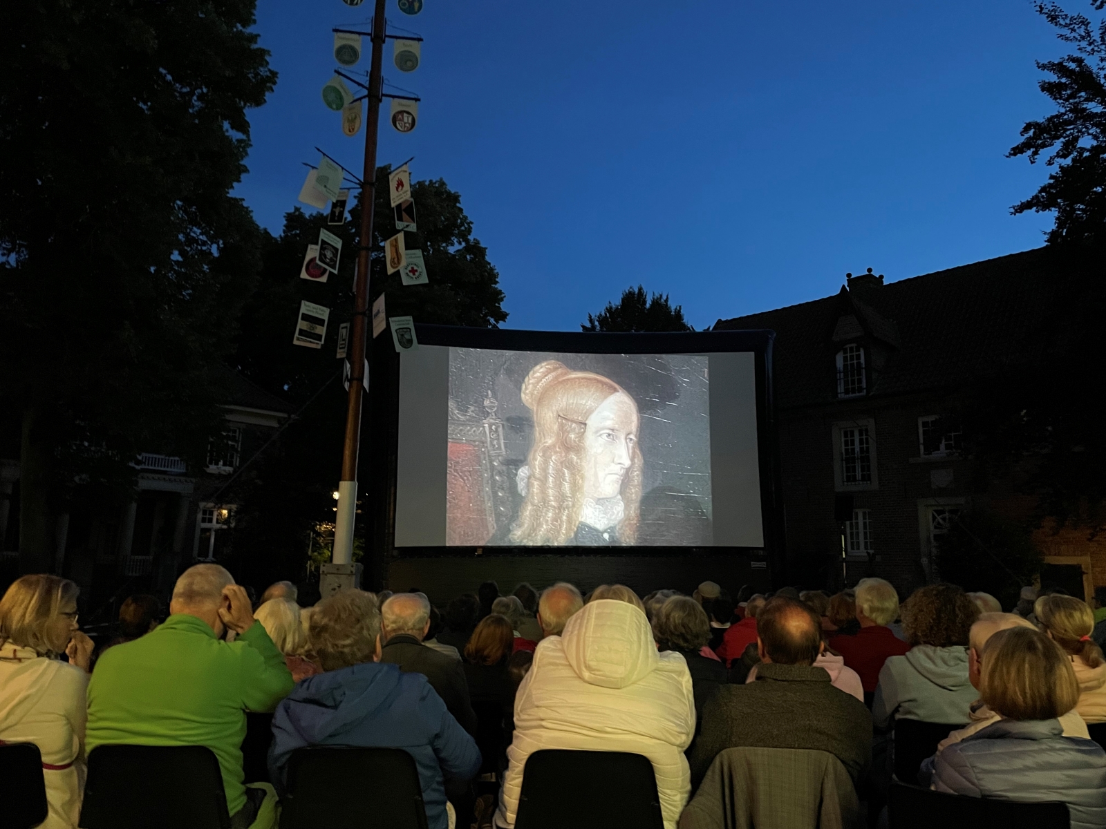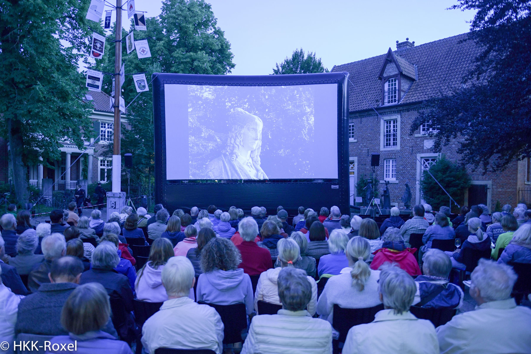 Auf dem Pantaleonplatz waren für gut 300 Gäste Stuhlreihen vor einer Großleinwand aufgestellt, ferner etliche Bierzeltgarnituren und Stehtische. Insgesamt wurden 500 Besucher gezählt. Im Vorfeld der Filmvorführung spielte das Musikkorps der Freiwilligen Feuerwehr, gab es Droste-Hülshoff-Führungen in der Kirche St. Pantaleon und auf dem Friedhof sowie einen Auftritt von Margit Dohrenbusch;  im Annette-Kostüm gab die versierte Kennerin der Droste-Lebensgeschichte auf Einladung des HKK Roxel Einblick in die Beziehung der Droste-Familie zu Roxel.