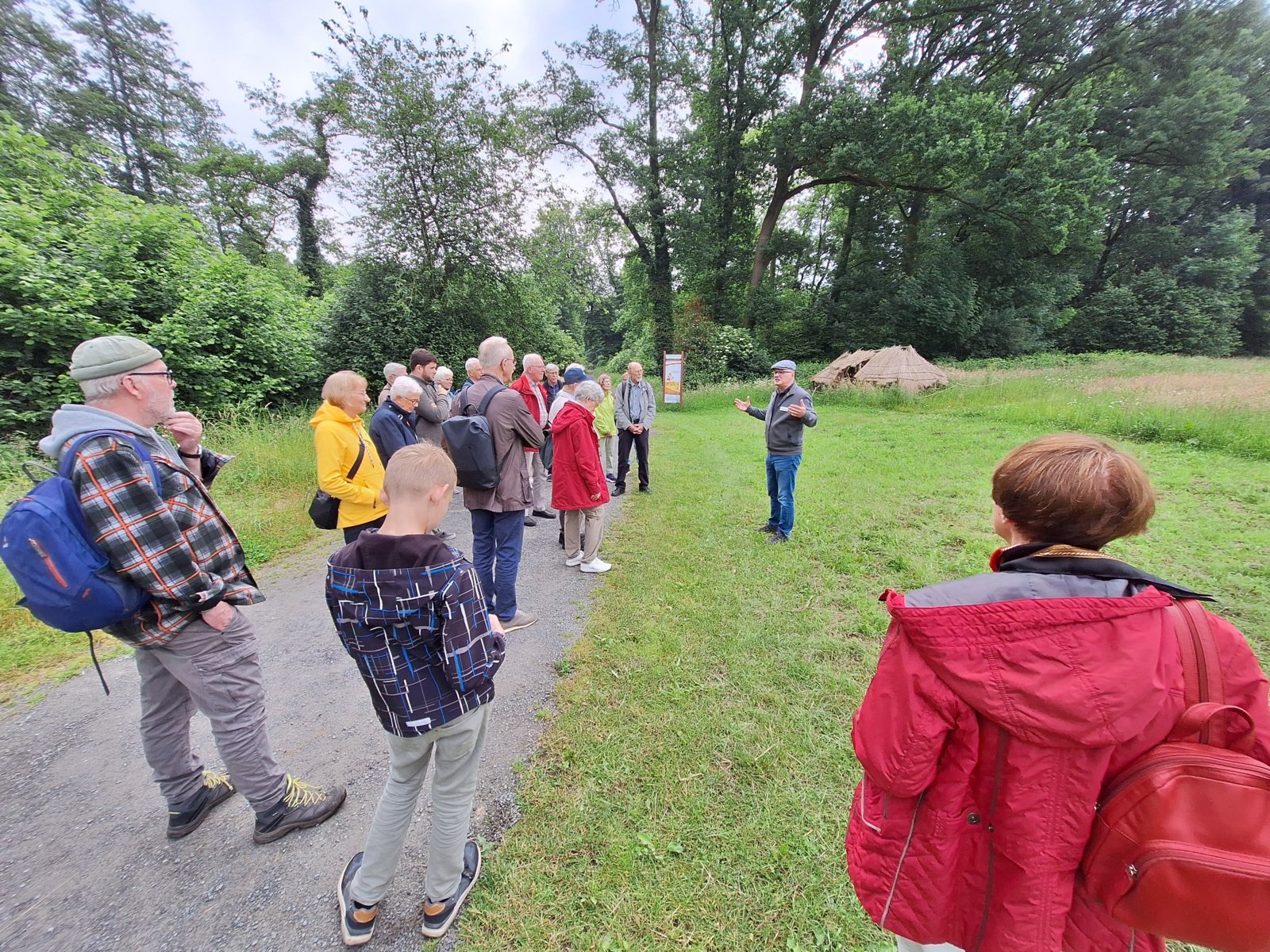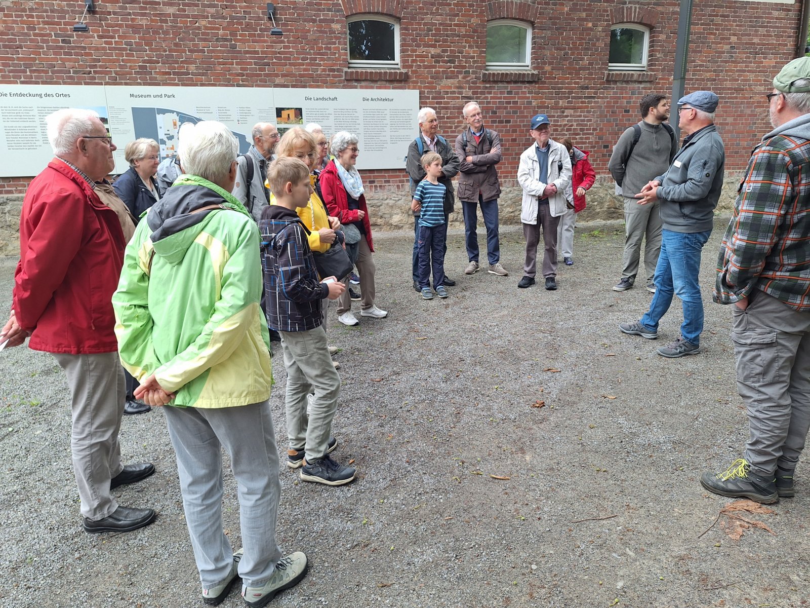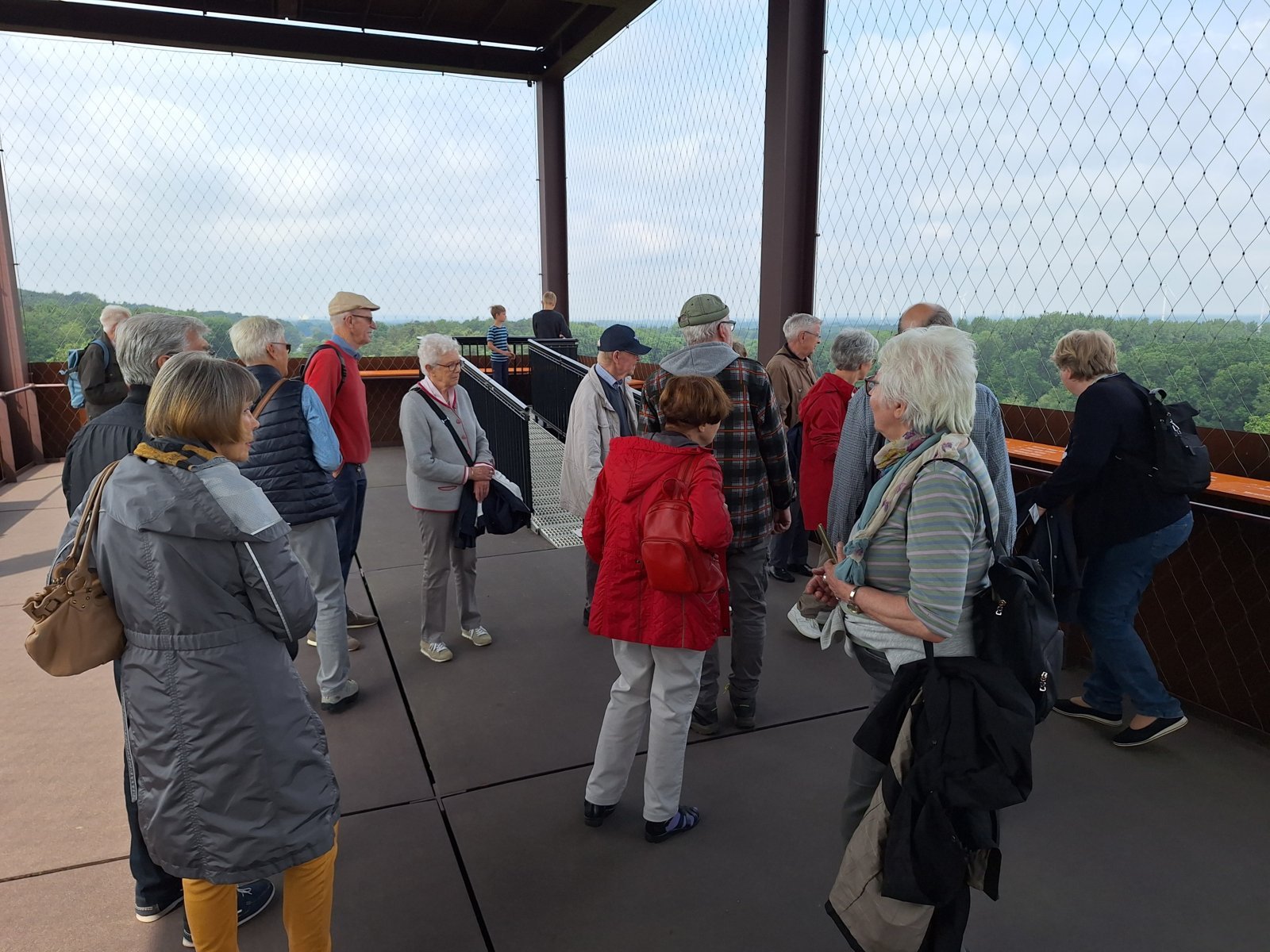 Die Teilnehmer/innen erkundeten zunächst unter Leitung von Dr. Wilhelm Bauhus und einem Führer in Kalkriese im archäologischen Park, auf dem imposanten Aussichtsturm und im Museum mit der ikonischen Silbermaske eines Centurios, wie sich mit innovativen Methoden das Schlachtfeld rekonstruieren lässt. Nach der Mittagspause im Gasthaus Varusschlacht führte Dr. Bauhus die Gruppe nach Westerkappeln im Tecklenburger-Land, um ein Ausgrabungsgelände der Jungsteinzeit zu besichtigen. Die Sloopsteene sind ein erst kürzlich wieder neu erforschtes Megalithgrab. Auf der Rückfahrt nach Roxel stand zum Schluss noch ein Gang zum Alten Eisenbahntunnel Lengerich auf dem Programm. Von 1941 – 1944 und in den letzten Kriegstagen Ende März 1945 nutzte die Lengericher Bevölkerung den alten Eisenbahntunnel als Zufluchtsort vor den Bombenangriffen.Zwischen März 1944 und Ende März 1945 wurde der Tunnel im Zuge der kriegsbedingten Untertage-Verlagerung der Produktion von Kriegswaffen als KZ-Außenlager von Neuengamme genutzt. 2015 wurde der Alte Tunnel unter Denkmalschutz gestellt.