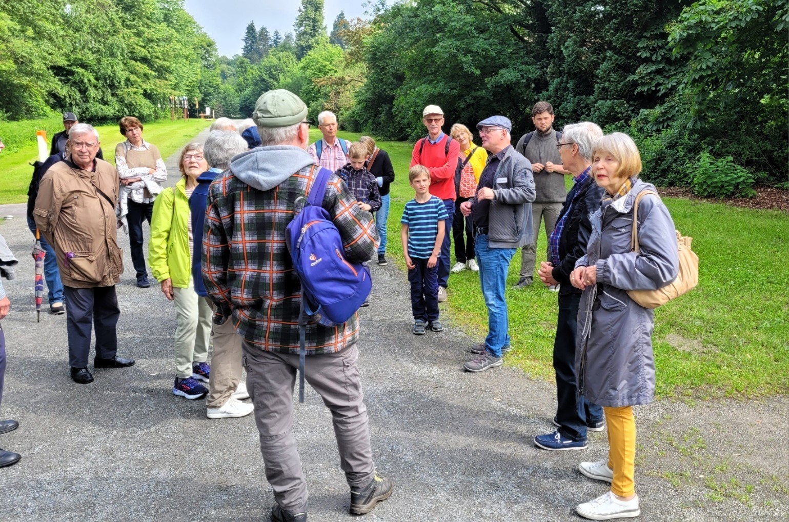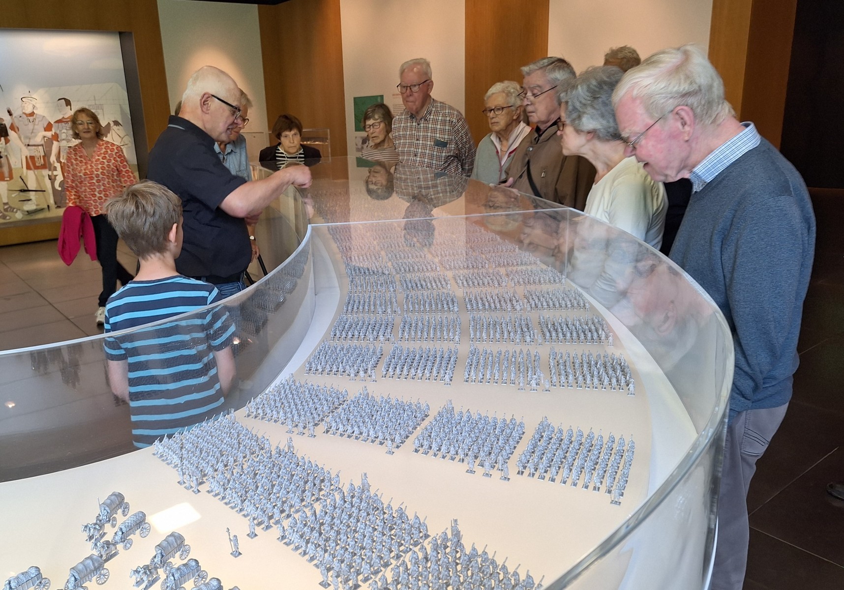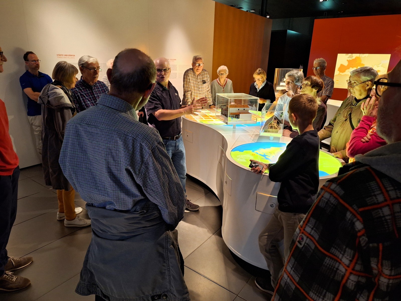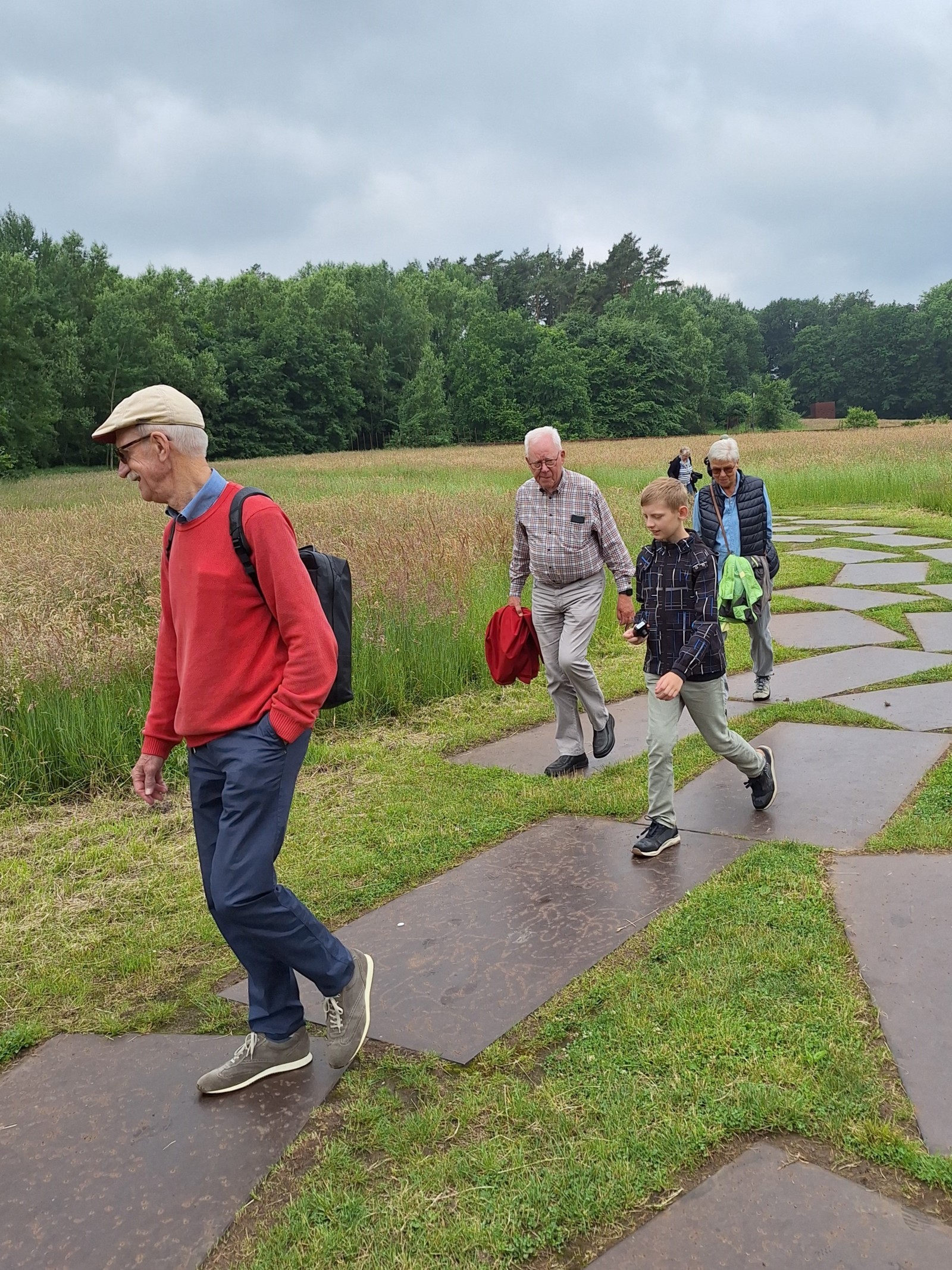 Die Teilnehmer/innen erkundeten zunächst unter Leitung von Dr. Wilhelm Bauhus und einem Führer in Kalkriese im archäologischen Park, auf dem imposanten Aussichtsturm und im Museum mit der ikonischen Silbermaske eines Centurios, wie sich mit innovativen Methoden das Schlachtfeld rekonstruieren lässt. Nach der Mittagspause im Gasthaus Varusschlacht führte Dr. Bauhus die Gruppe nach Westerkappeln im Tecklenburger-Land, um ein Ausgrabungsgelände der Jungsteinzeit zu besichtigen. Die Sloopsteene sind ein erst kürzlich wieder neu erforschtes Megalithgrab. Auf der Rückfahrt nach Roxel stand zum Schluss noch ein Gang zum Alten Eisenbahntunnel Lengerich auf dem Programm. Von 1941 – 1944 und in den letzten Kriegstagen Ende März 1945 nutzte die Lengericher Bevölkerung den alten Eisenbahntunnel als Zufluchtsort vor den Bombenangriffen.Zwischen März 1944 und Ende März 1945 wurde der Tunnel im Zuge der kriegsbedingten Untertage-Verlagerung der Produktion von Kriegswaffen als KZ-Außenlager von Neuengamme genutzt. 2015 wurde der Alte Tunnel unter Denkmalschutz gestellt.