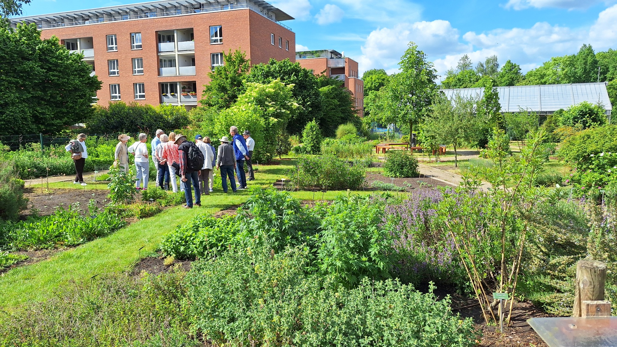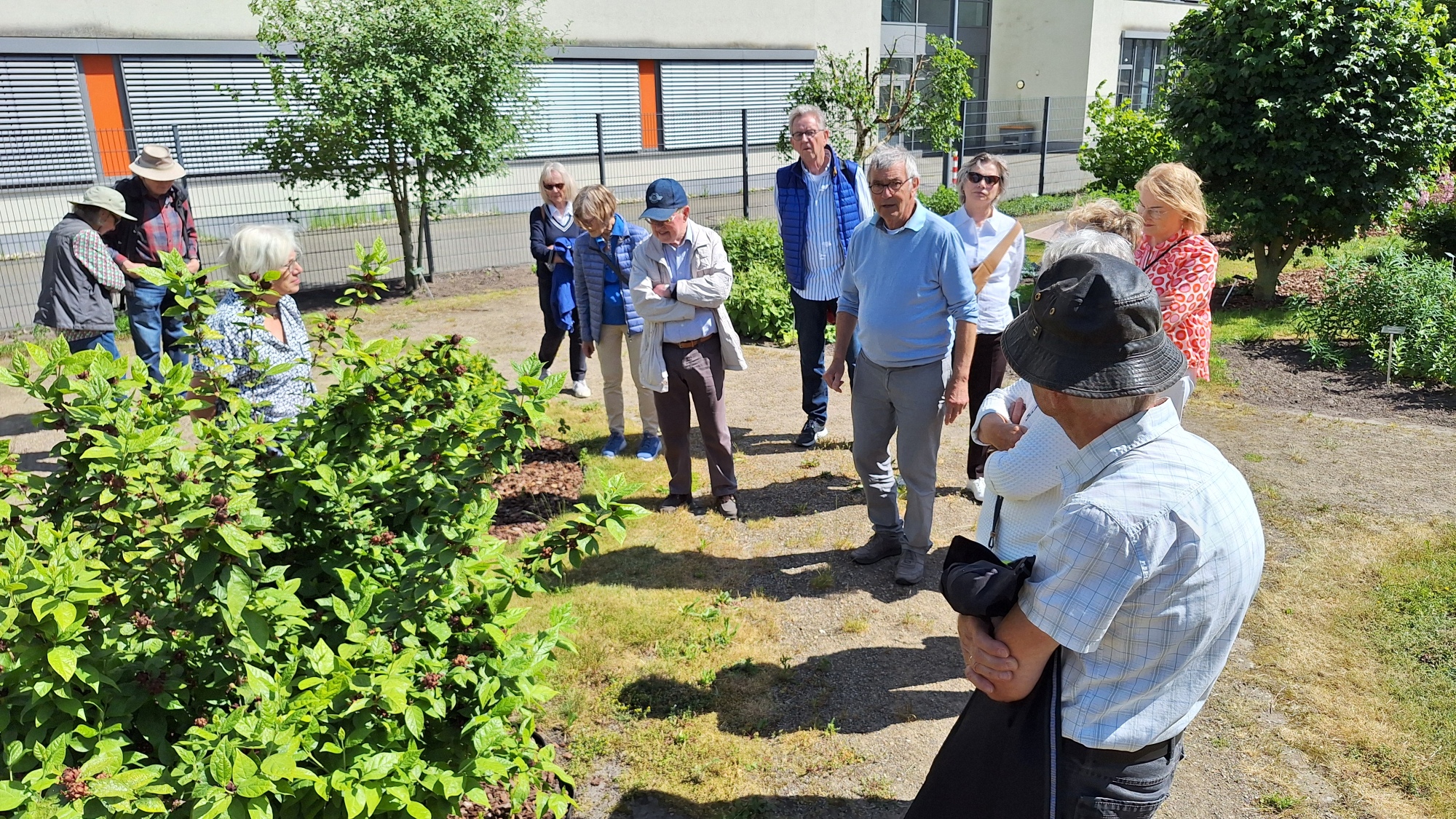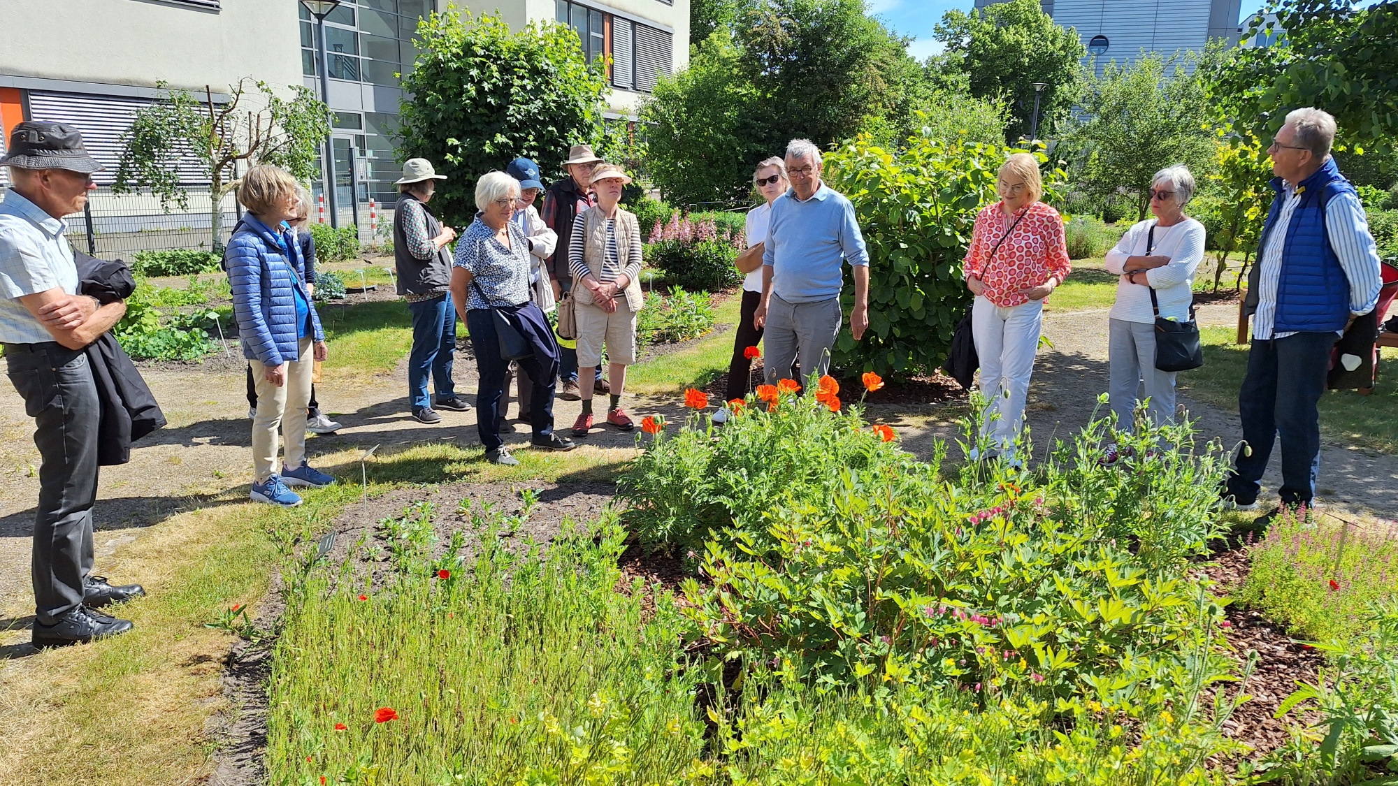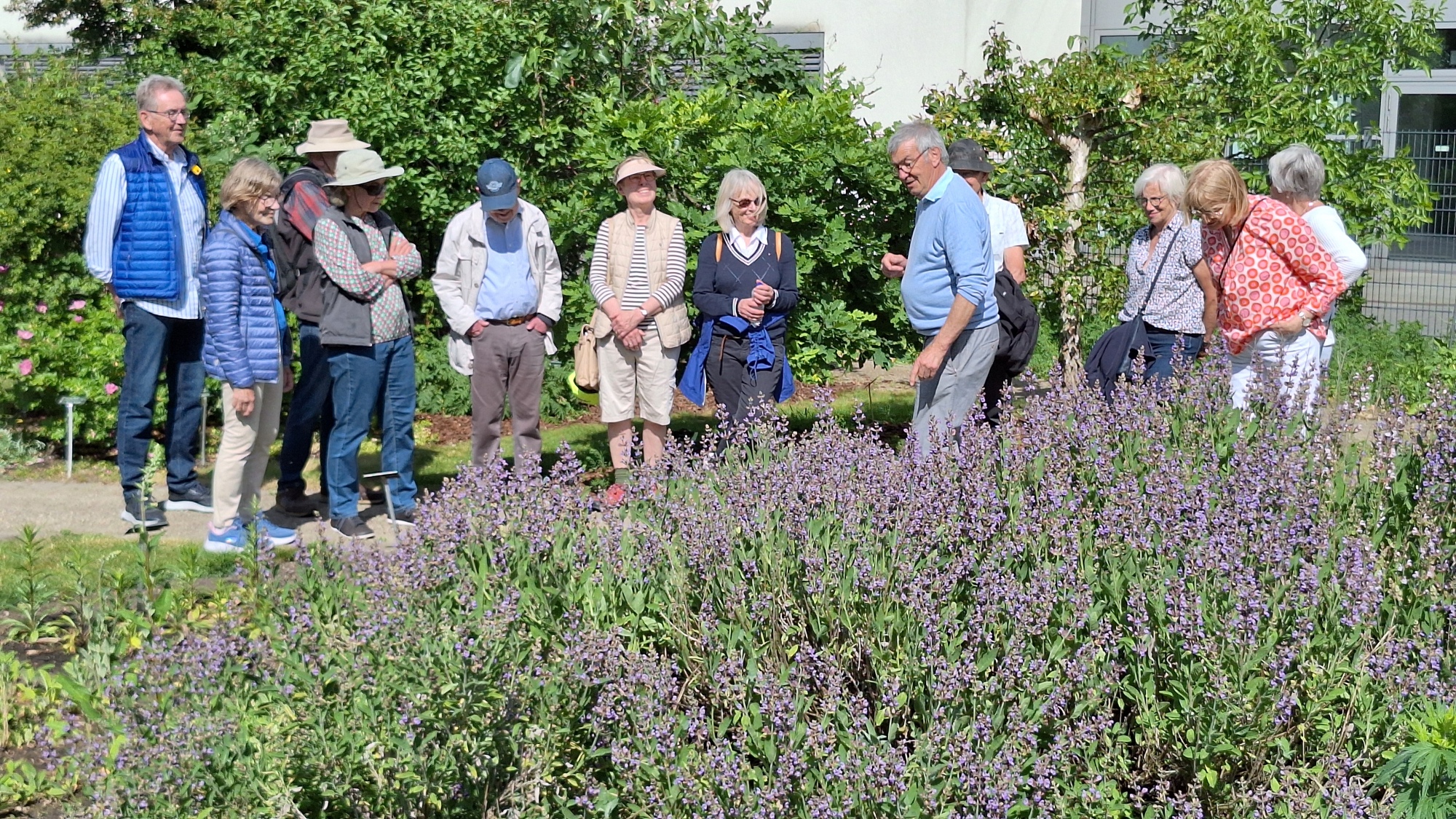 Der 2018 an der Corrensstraße neu eröffnete Arzneipflanzengarten bietet Studierenden der Pharmazie und Lebensmittelchemie auf dem Außengelände und im Gewächshaus über 400 lebendige Anschauungsobjekte aus dem Bereich der Arznei-, Gift- und Nutzpflanzen. Dr. Rolf Engelshove erläuterte bei seiner Führung den Einsatz und die Wirkung pflanzlicher Arzneimittel von der Kräutermedizin bis hin zur modernen Pharmazie.